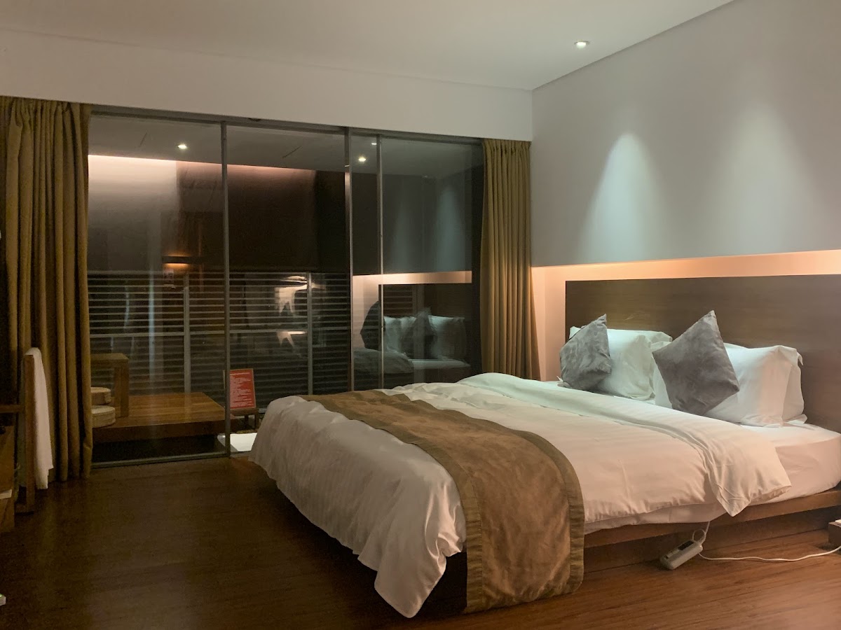 The bedroom is so specious and equipped with a big bath tub and nice view of Beitou town. Impressed by the service here. However, they should maintain the cleanliness of the bathtub especially the tab.